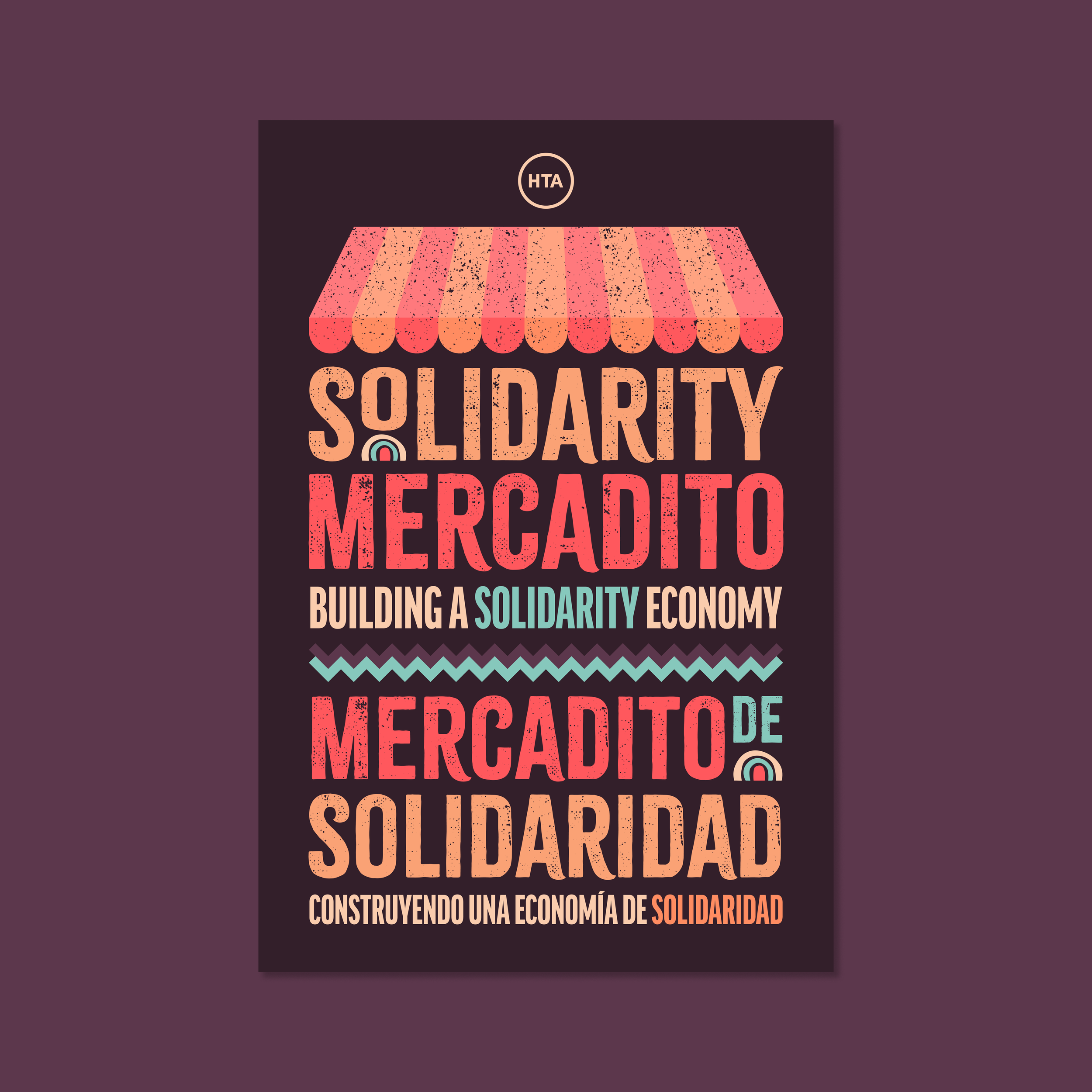 WU! designer, Alyssa Brown, collaborated with HTA’s Development Manager, Ashley Hart, to create a visual identity for the Solidarity Mercadito. The color palette references fall, the season the Mercadito was held, complementing the current HTA brand color palette with deep, rich purples.
