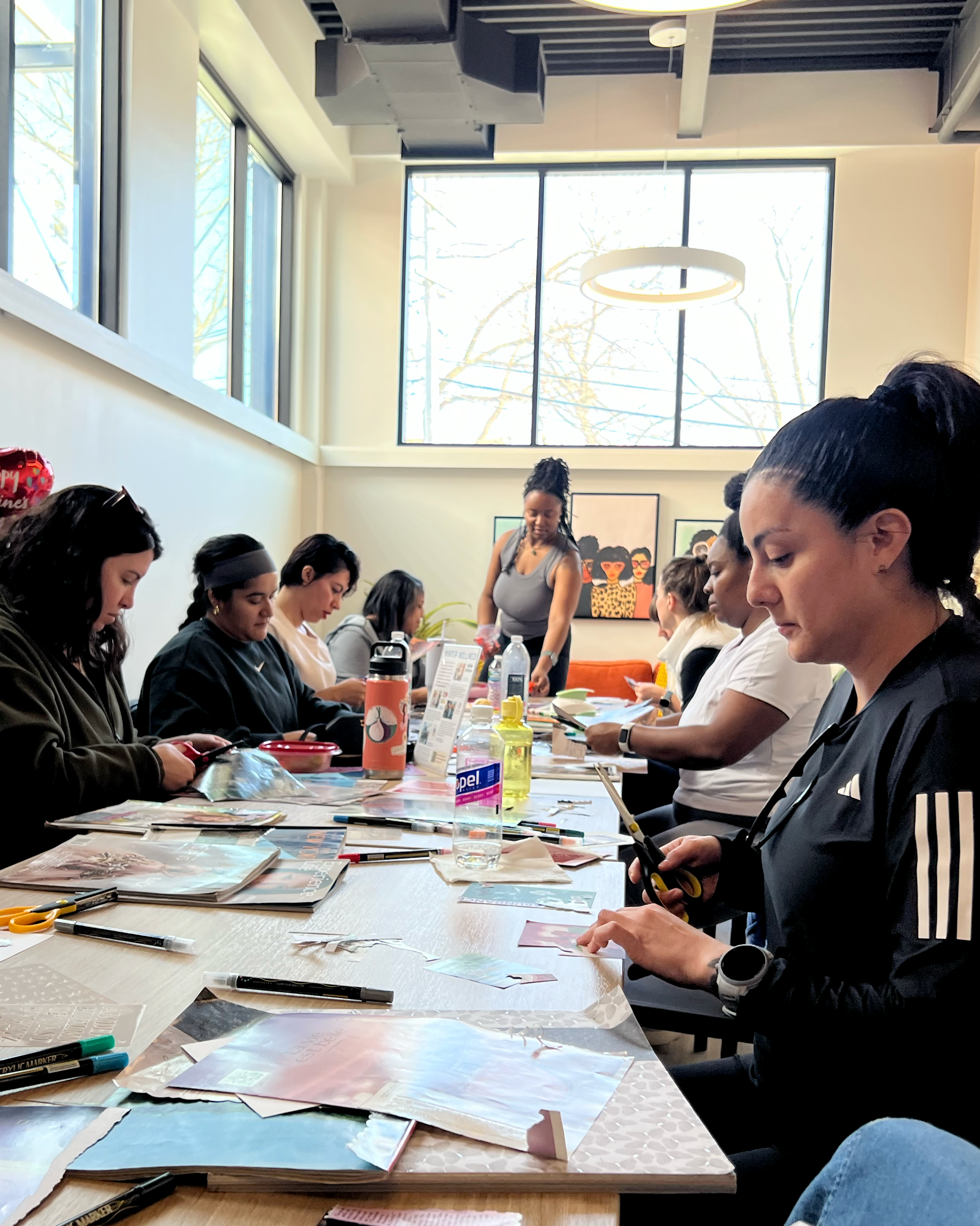 Our second-annual Winter Wellness on February 15 was one for the books, literally. We had a fantastic day hanging out at The AUX Wellness Collective where we kicked things off with a yoga flow and meditation led by L’Oreal Thompson Payton. We followed that up with a crafting session led by Destini Brown, set up among the bookshelves of Zora’s Place. Mixed in throughout were chair massages from Morgan Pointer of Pillars of Vitality and delicious food from Chicky’s Kitchen Creations.